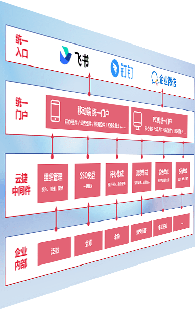 对协作平台提供支持服务,,,支持企业应用与协作平台对接,,,,包含组织同步、、、、消息集成、、、、待办集成等。。支持目前主流的协作平台:钉钉、、、企微和飞书。。